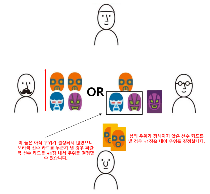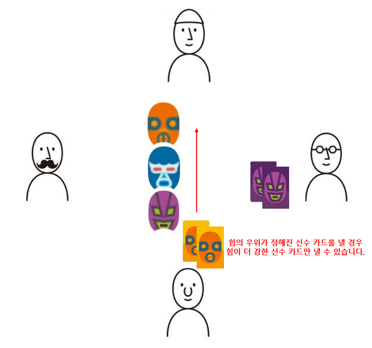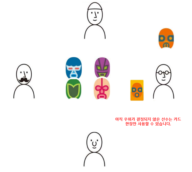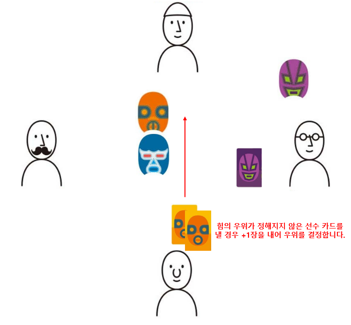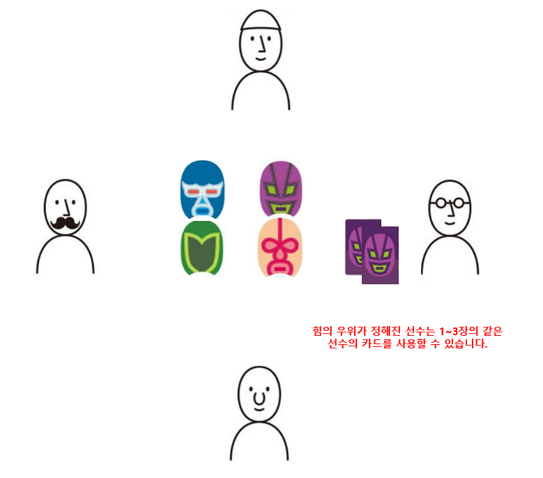 2. 받은 카드들은 본인만 확인한 후, 가장 최근에 프로레슬링 경기를 본 플레이어가 선플레이어가 됩니다.
