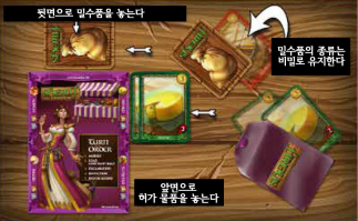 - 자신의 가방에 최대 5장까지의 물품을 몰래 넣습니다.