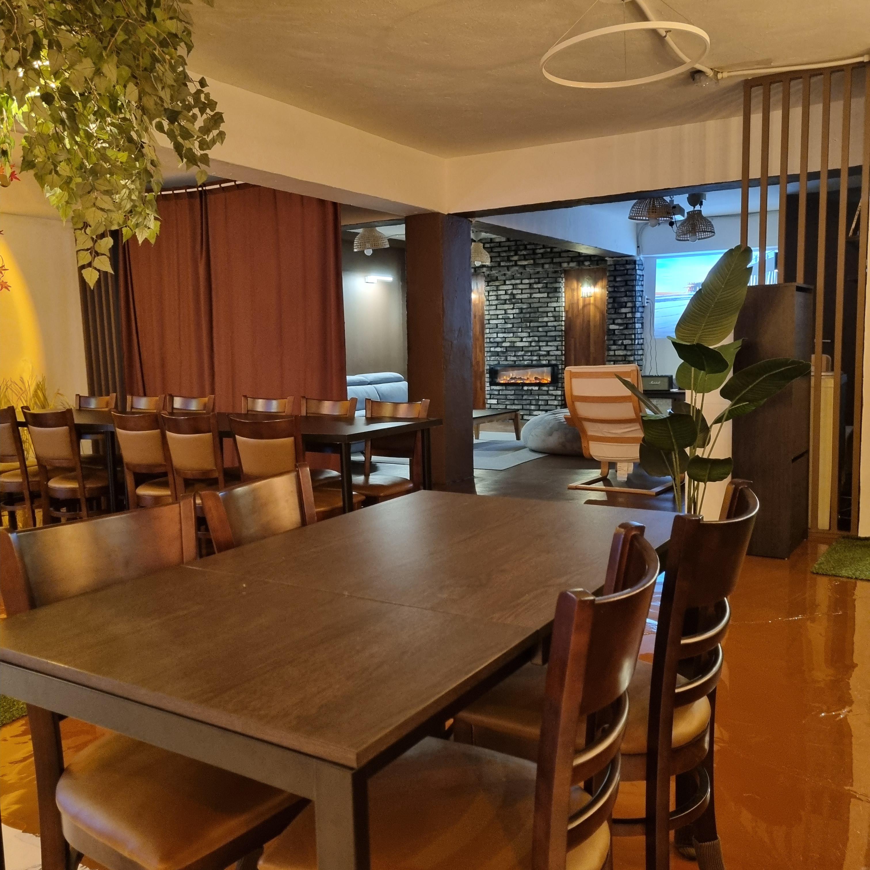 현재 대형 테이블 4개, 의자 24개, 쇼파, 흔들의자 2개, 빈백 등 여러명이 즐길 수 있도록 준비해두었습니다!