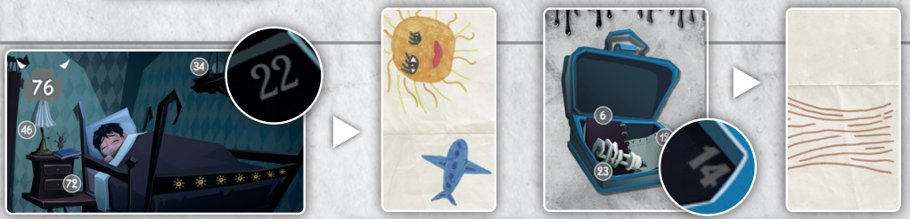 10. 76번 카드의 22번을 발견하여 22번 카드를 가져가면 되고, 45번 카드의 14번을 발견하여 14번 카드를 가져오면 됩니다.