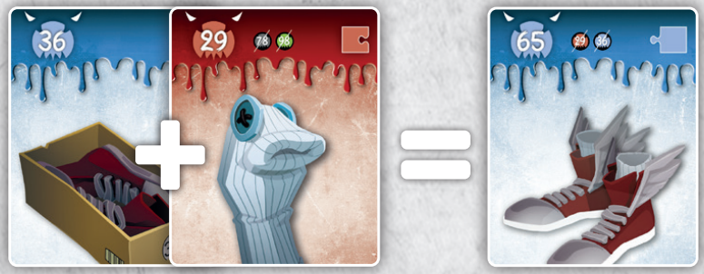 14. 36번 카드 운동화와 29번 카드 양말을 결합하여 65번 카드 날개 달린 신발을 만들어 줍니다.