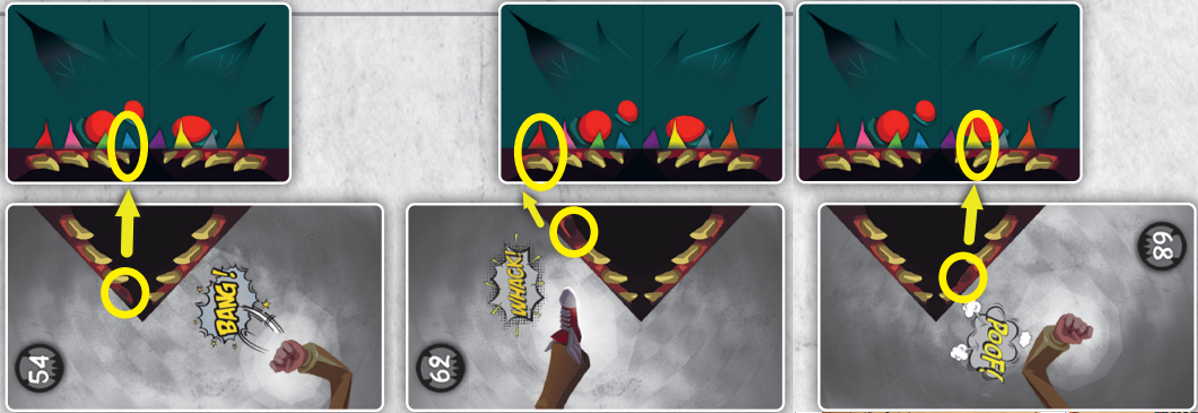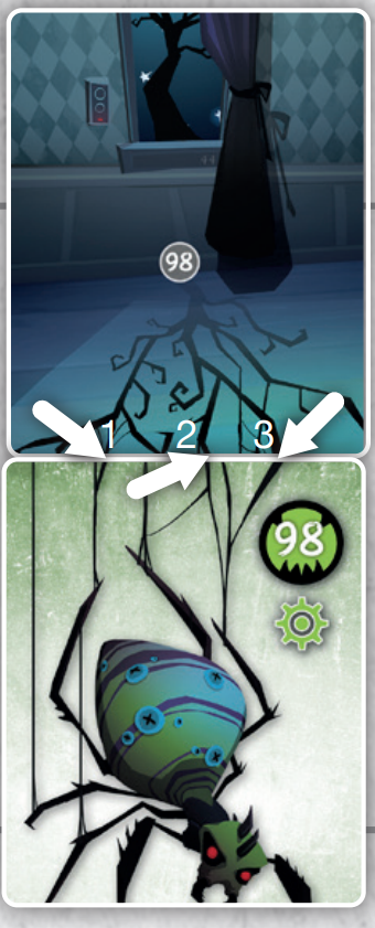 카드를 정렬했을 경우 제대로 연결된 3가지 줄을 자르면 거미가 떨어져서 퇴치됩니다.