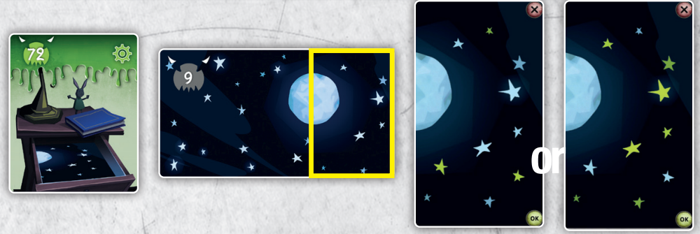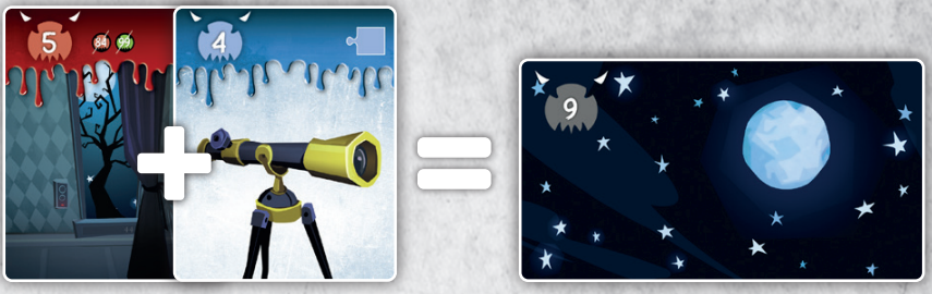 7. 5번카드 창문 밖을 4번 카드 망원경으로 보면 9번 카드 별자리를 얻을 수 있습니다.