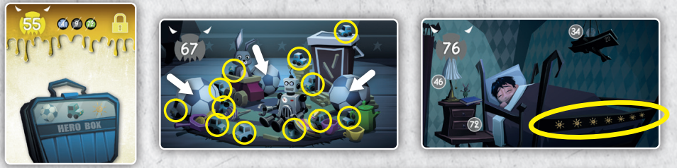 9. 55번 카드에 가방을 열려면, 67번 카드의 공 개수와 장난감 차 개수, 76번 카드의 별 개수를 세서 3127 암호를 입력하면 됩니다. 45번 카드를 가져가면 됩니다.