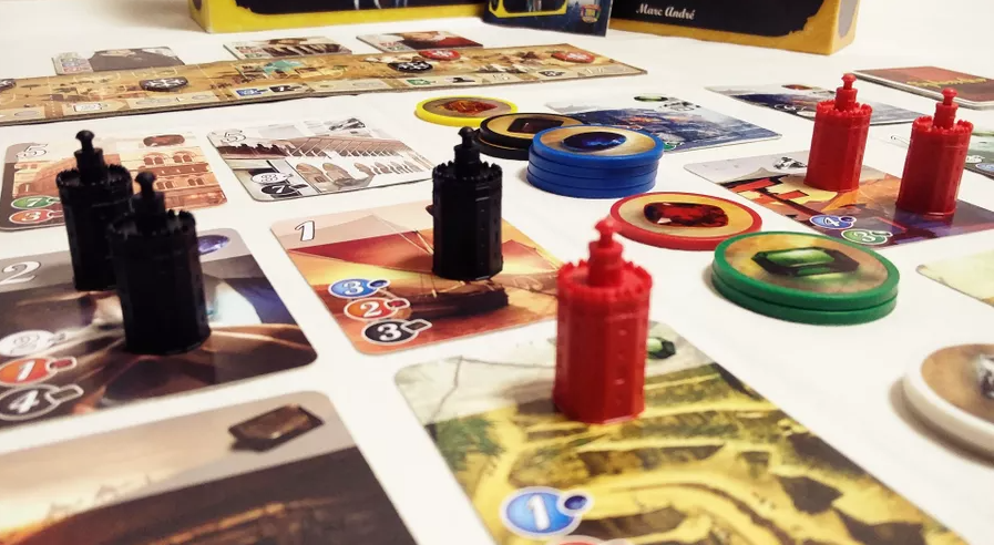 <성채> 확장은 개발 카드를 선점/지배하는 성채를 사용해 상호작용을 활발하게 합니다.