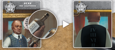 8. 바에서, 바텐더가 들고 있는 병의 숫자가 비치는 것을 볼 수 있습니다.