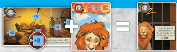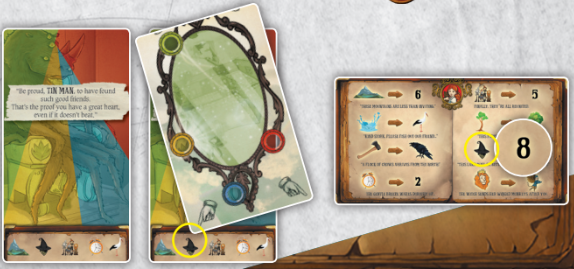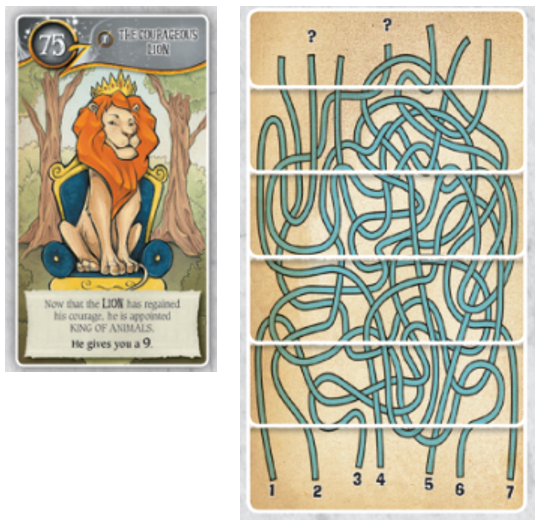 7. 개와 함께하는 도로시, 농부와 함께하는 허수아비, 경비원과 함께하는 양철인간, 또는 조련사와 함께하는 사자중에 둘 중 하나를 결합할 수 있습니다. 91번 카드를 가져가시면 됩니다.