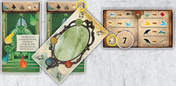 거울에서 황새를 가리키며, 황새는 8번 카드의 7번을 가리킵니다.