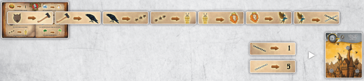 10. 80번 카드 뒷면의 늑대부터 시작해서 체인 두개까지 여행하시면 됩니다.