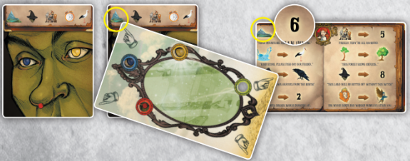 9. 퀘스트를 캐릭터 아래에 배치하고 C 카드 금지된 숲을 건너가시면 됩니다.