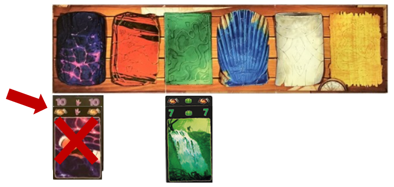 탐험로가 비어 있다면 첫카드를 내려놓아 새 탐험로를 만들고, 기존 탐험로를 연장할때는 숫자가 더 큰 카드만 내려놓을 수 있습니다.