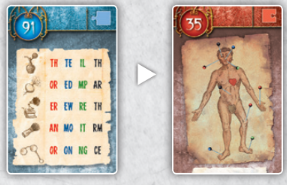 55 + 25 = 80 . 80번 카드를 가져갑니다. 그것을 해독하려면 특별한 각도에서 읽으면 되는데, 한쪽 눈을 감고 카드를 기울이면 코드 3726을 읽을 수 있습니다. 2번 죽음의 책을 열어봅니다..