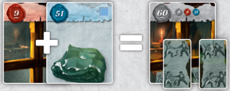 두 번째 경우에는 42번 카드를 결합합니다. 28 + 42 = 70 .
