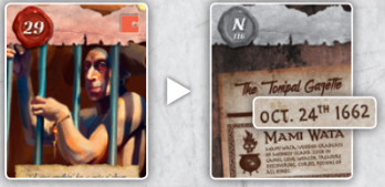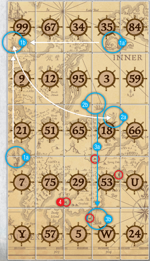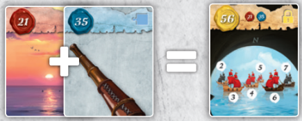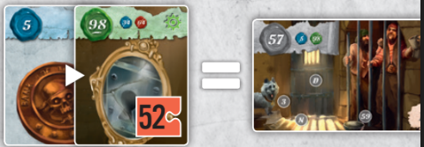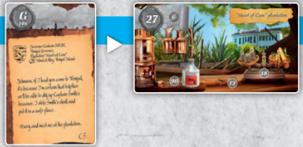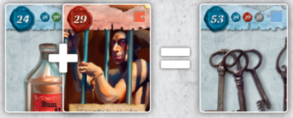 19. 29번 카드 Crabby Samy에게 24번 카드 럼주 병을 줍니다: 24 + 29 = 53 .