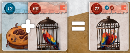 23. 12번 카드 비스킷을 65번 카드 앵무새에게 줍니다: 12 + 65 = 77 .