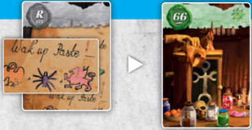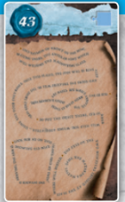 53번 카드를 오른쪽으로 90° 회전하고 메시지의 첫 줄 위에 작은 흰색 화살표가 서로 마주보도록 배치합니다.