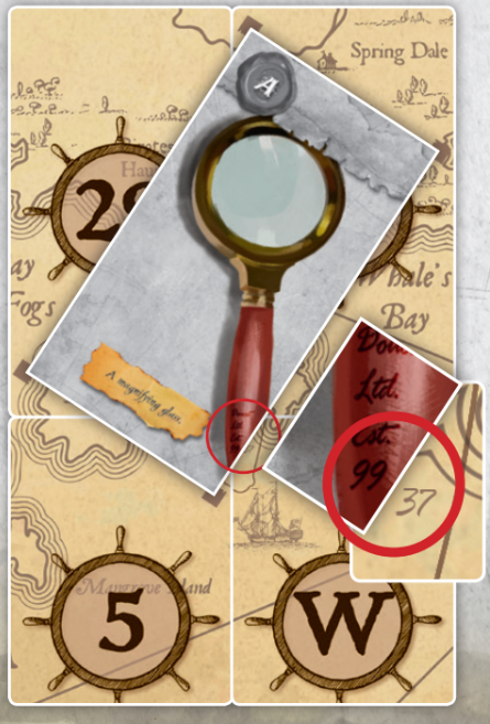 26. A카드 돋보기를 퍼즐의 4개의 표시 위에 놓습니다. 손잡이와 퍼즐이 최종 코드인 9937을 알려줍니다.