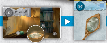 1. 0번 카드 감옥 바닥에서 거울을 집습니다. 34번 카드를 가져옵니다.