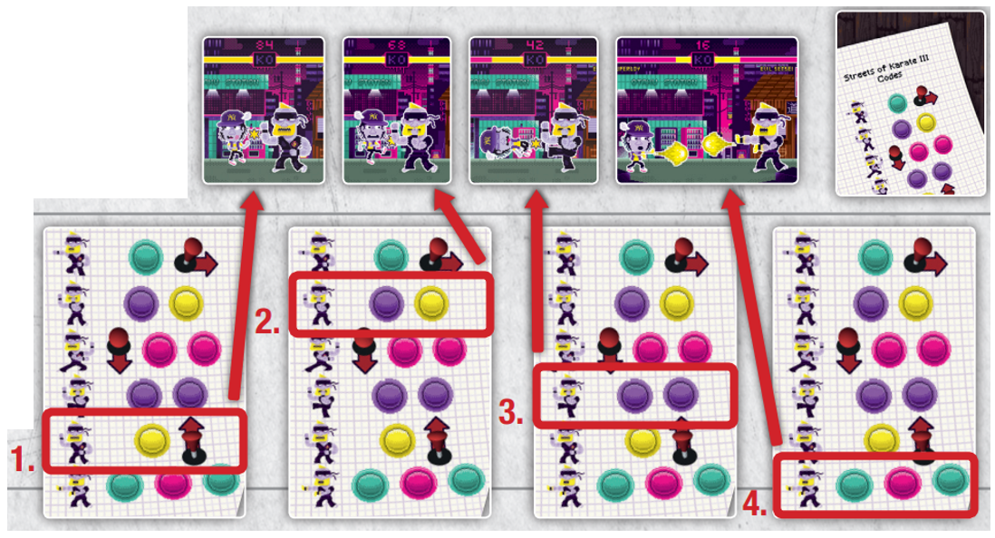 장치 26에서 적의 움직임에 따라 4개의 올바른 키 조합을 입력하십시오.