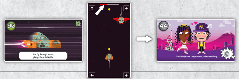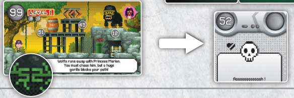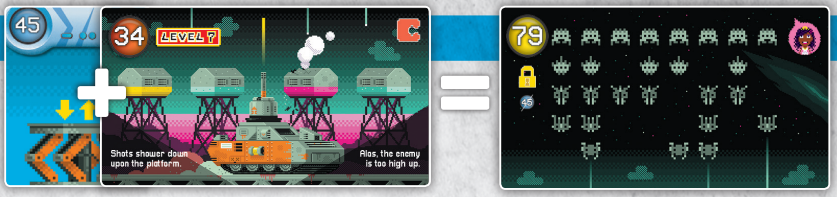 오락기 속 가상 세계를 누비며 각 스테이지를 하나하나 돌파하세요.
