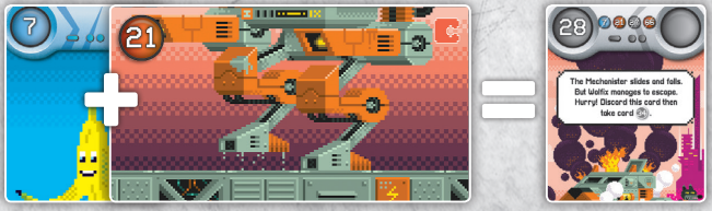 14. 로봇의 발 앞에 바나나 껍질을 던집니다. 7 + 21 = 28 .