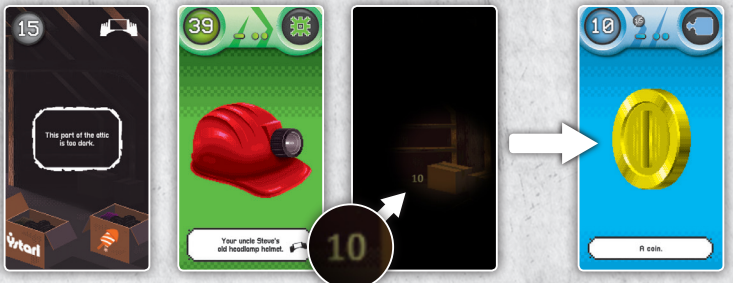1. 다락방에서 6개의 보이는 카드를 찾은 후 헤드램프 헬멧을 사용하여 다락방의 가장 어두운 부분을 밝힙니다.