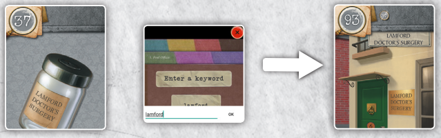 21. 37번 카드 약병에 대해 85번 카드 London Directory에서 Lamford를 찾습니다.