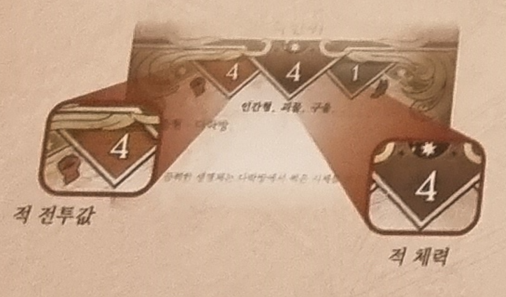 난이도는 카드 기능 또는 테스트가 개시된 게임 세부 단계(전투, 회피 등)에 따라 다릅니다.