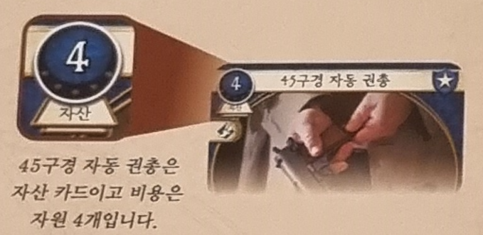 - 플레이하는 카드가 자산 카드라면, 조사자의 플레이 영역에 둡니다.