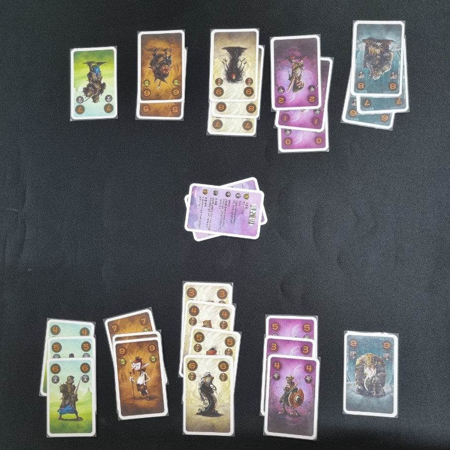 6. 13번의 대결을 마친 뒤 자신의 점수 영역에 있는 카드를 비교합니다. 각 종족마다 비교하여 카드가 많은 사람이 승리하고, 더 많은 종족의 승리를 이끈 사람이 최종 승리합니다.