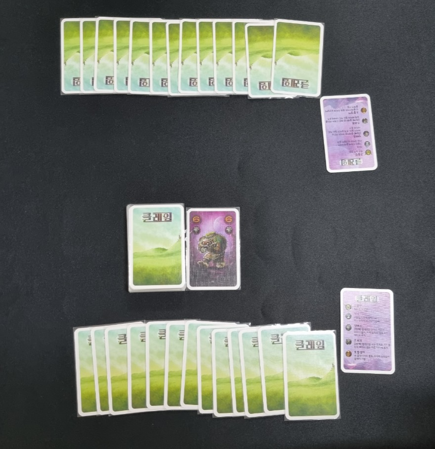 2. 선 플레이어 부터 한 장씩 내려 놓고 후 플레이어는 선 플레이어의 카드와 같은 종족의 카드를 내려놓습니다.