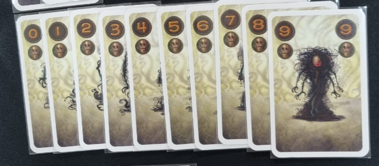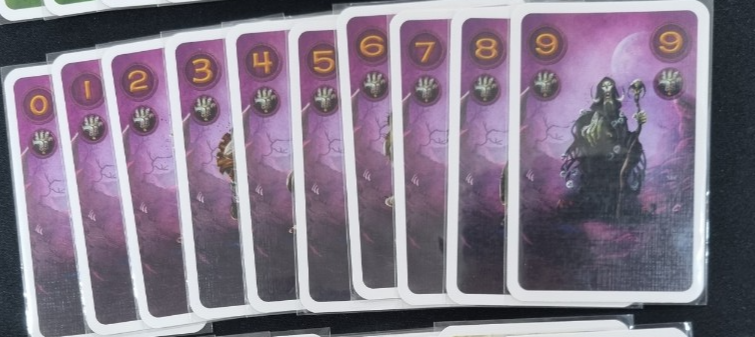 1. 두 번째 플레이어가 선 플레이어와 같은 종족 카드를 플레이 했다면 더 높은 숫자의 카드(0이 제일 낮고, 9가 제일 높음)를 낸 플레이어가 트릭을 따내고 테이블 가운데에 공개된 카드를 획득합니다.